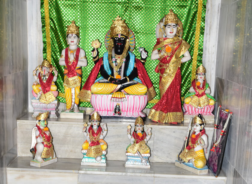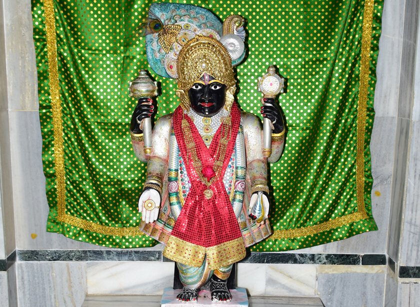 It has deities like Sheshashayi Vishnu-Lakshmi, Char Dham (Badri Narayan, Rameshwar, Dwarkadhish & Lord Jaggannath) Dvadash Jyotirling, Shrinathji, Shri Ram-Sita-Lakshman, Hanumanji, Amba-Gayatri-Saraswati-Khodiyar devi and so on.