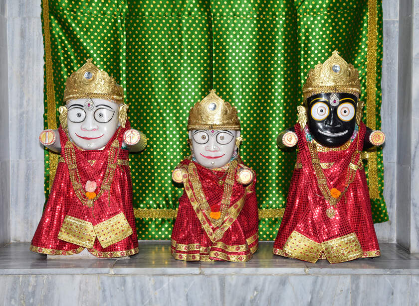A beautiful grand temple is situated in the premises. Deities of multiple sects (sampraday) are worshipped here.